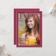 Magazine style birthday of the year photo sweet 15 La Quinceañera birthday invitation. This is styled after a magazine cover where you replace the photo with your own photo. You can change this from a sweet 15 birthday to any other birthday year because the text is customizable. This magazine cover birthday invitation would work best for a woman or girl. You can personalize all the text except where it says event and birthday of the year and you can change out the photo for your own photo. To change the text and photo, use the personalize options. Or to change the font, font size, font colour, photo size, photo placement, or text placement, choose customize it.