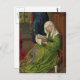 Vintage image of woman in green gown holding a book in her lap as she sits on the floor. Fine art by early flemish painter Rogier van der Weyden c 1450.