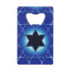 Une simple image fractale aux tons bleus représentant plusieurs instances d'un David magen (Étoile de David) formé par des lignes croisées en verre ou en cristal, l'étoile centrale est remplie de bleu foncé. Ajoutez votre propre texte.