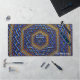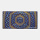 Image fractale en cuivre, bleu et or d'un Magen David (Star of David) ressemblant à un panneau métallique à texture complexe. Customisez en ajoutant votre propre texte.