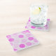 This glass coaster features varying shades of magenta circles overlapping each other. Perfect for a modern home.