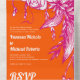 Vintage magenta pink, orange and white line art flowers spring wedding all in one Invitation. This pretty wedding design showcases magenta fuchsia pink and white line art flowers on the right part and the names in bold typography on vibrant orange background.