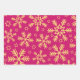 Santa silhouettes, bright trees, and festive snowflakes adorn this modern pink and yellow wrapping paper set.