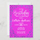 Magenta Blue Glitter Confetti Border Birthday Invitation