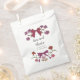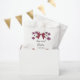 Boho bow theme bridal shower favour bag featuring hand drawn illustration of magenta ribbon and flowers.