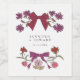 Rustic and romantic bow theme wedding wine bottle label featuring hand drawn illustration of magenta ribbons and flowers.