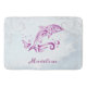 Add an elegant touch to your bath decor with a Magenta Dolphin Personalized Bath Mat. Bath mat design features a vibrant metallic dolphin against a muted seascape adorned elegant scrolls with an area to personalize with your name. Additional gift items available with this design as well as a variety of colours.