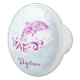Add an elegant touch to cabinetry or furniture with a Magenta Dolphin Personalized Ceramic Pull. Pull design features a vibrant metallic dolphin against a muted seascape adorned elegant scrolls with an area to personalize with your name. Additional gift items available with this design as well as a variety of colours.