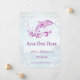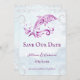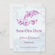 Personalize a unique wedding announcement with a Magenta Dolphin Save the Date. Announcement design features a metallic styled dolphin against a muted ocean waves background adorned with elegant scrolls and text you can personalize with your wedding date details. Additional save the date announcement available for this design in a variety of colours.