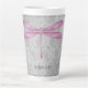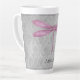 Enjoy your latte or morning coffee with a Magenta Dragonfly Damask Personalized Latte Mug. Mug design features a colourful dragonfly against an elegant vintage grey damask pattern. Additional gift items available with this design as well as a variety of colours.