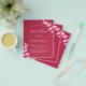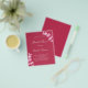 A magenta background, decorated with eucalyptus stems, sprigs. Personalize and add a name and party details.