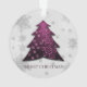 Decorate your tree this holiday season with a Magenta Festive Christmas Tree Ornament. Ornament design features a vibrant and festive Christmas tree adorned with falling grey and white snowflakes with a holiday greeting. Additional gift and holiday items available with this design as well.
