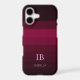 This clean, minimalist design showcases a timeless striped pattern in deep magenta, plum, and burgundy tones, bringing a touch of refined warmth. The custom monogram adds a unique personal element, perfect for women who enjoy simple yet stylish accessories. It's a practical option that pairs everyday utility with subtle elegance, ideal for personal use or as a thoughtful gift.