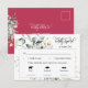 Cette carte postale encastrée RSVP mariage avec 3 options de choix de repas présente un élégant style moderne minimaliste avec des arrangements feuilles de verdure aquarelle et de belles calligraphies et des polices de typographie propres et serif sur un arrière - plan viva magenta. La simplicité et le design propre de cette carte d'enceinte de réponse RSVP mariage fonctionne bien avec tous les thèmes mariages et certainement un grand ajout à votre mariage. Il suffit de customiser le nom du couple, la date, 3 options de choix de repas, et d'autres informations en quelques étapes faciles et personnalisez-le pour lui donner une touche personnelle agréable. Icônes de repas disponibles : dinde, oie, venison, canard, agneau, porc, boeuf, poulet, fruits de mer et végétarien. Si vous souhaitez modifier les icônes du repas, cliquez sur le bouton "modifier à l'aide de l'outil de conception" pour personnaliser les options du repas. Veuillez noter : Les belles phrases élégantes de la typographie de "répondre gentiment" et "livrer gentiment" avec les arrangements feuilles de feuillage d'aquarelle eucalyptus et d'autres éléments d'illustration graphique comme les lignes et les boîtes rectangle ne peuvent pas être modifiés, changés, déplacés ou supprimés. Elles sont réparées.