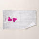 Ajoutez une touche élégante à votre bain avec un ensemble de serviettes de bain personnalisées Magenta Hearts. Le design des serviettes comprend une paire de coeurs, une vigne feuillue blanche molle contre un arrière - plan gris clair avec un espace à personnaliser avec votre nom. Autres cadeaux disponibles avec ce design ainsi qu'une variété de couleurs.