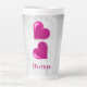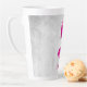 Enjoy your latte or morning coffee with a Magenta Hearts Personalized Latte Mug. Mug design features a a pair of hearts, a soft white leafy vine against a light grey grunge background with an area to personalize with your name. Additional gift items available with this design as well as a variety of colours.