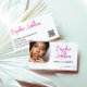 Magenta Lines Photo Signature Script QR Code Business Card