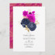 Trendy colour of the year 2023 viva magenta floral couples shower invitation with accents of navy blue.