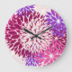Magenta Peach Burgundy and Purple Stylized Dahlias Large Clock