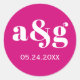 Magenta pink simple and elegant monogram wedding sticker. It displays your initial and the date of your wedding in white on hot pink background.