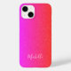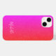 Trendy hot pink and coral gradient leather look texture (PRINTED, not real leather) iPhone 14 personalized with your name in chic calligraphy script. ++++++++++ Can be a unique custom gift for her on birthday, Sweet 16, Quinceanera, graduation or for Christmas.