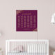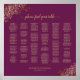 This beautiful wedding seating chart features gold text on a cassis purple, magenta plum, or berry colored background with seating assignments for up to 250 guests. It features a simple yet stylish and elegant design with ornate decorative faux foil gold filigree in the corners. The title is written in fancy script calligraphy and reads: Please find your table.