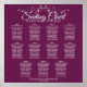 This beautiful 11 table wedding seating chart will make it easy for your guests to find their assigned seats at your reception. Features a design that is simple yet elegant with white text on a cassis purple or magenta plum coloured background and a silver faux foil vintage floral filigree border.