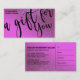 This is the perfect gift certificate business card for a trendy, stylish, girly, and modern businesswoman. This design features a simple black handwritten brush script typography on a faux printed sparkly dark magenta purple glitter and bright magenta purple ombre gradient glamourous and chic background. It's the perfect way to allow your customers to buy a gift for their family and friends and at the same time promote your business.
