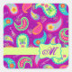 Magenta Purple Green Modern Paisley Monogram Square Sticker