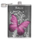 Magenta Rustic Butterfly Personalized Flask