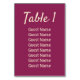 Magenta wedding reception table number. Personalize with the table number and each guest seated at that table. Design one for each table. Contact me for assistance with your customizations or to request additional matching or coordinating Zazzle products for your event(s).