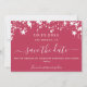 A modern and elegant Save the Date for a wedding. A magenta background decorated with white stars. Personalize and add a date and names. The text: Save the Date is written with a large trendy hand lettered style script.