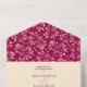 Classy and chic tri-fold classy magenta and champagne yellow wedding invitation.