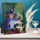 If you love magic, you'll love this fun Magic Act painting, Magic abounds in this whimsical piece of art digitally painted by our talented children's illustrator, Traci Van Wagoner, featuring a girl magician wearing a blue robe and a blue hat with stars and moons, pulling three multi colour rabbits out of a black hat with her magic wand.