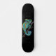 traditional watercolor and ink artwork of a green and blue colored chameleon on a black skateboard