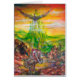 Colourful and vibrant acrylic painting in green,orange yellow,purple,red brown,white colours 2009, Duel between Bradamant and Negromancer on his griphon with enormous wings. Orlando Furioso,Canto 2 written by Italian Renaissance poet Ludovico Ariosto 1516 .