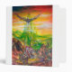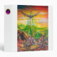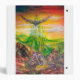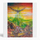 Colourful and vibrant acrylic painting in green,orange yellow,purple,red brown,white colours 2009, Duel between Bradamant and Negromancer on his griphon with enormous wings. Orlando Furioso,Canto 2 written by Italian Renaissance poet Ludovico Ariosto 1516 .
