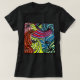 The color of the T-shirt (pale pink) provides a nice contrast that enhances the vibrant colors of the abstract design. It feels like a great pick for those who want to add a pop of color and creativity to their casual outfits.