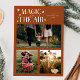 Elegant holiday card featuring a text that says "magic in the air" with 3 photos on the front. Add another photo on the back along with your message. Background is terracotta.