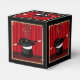 A graphic illustration of a magician’s hat with a red curtain background by artist/designer Charmaine Paulson on party favour boxes. The favour boxes have a template for your personalization. ©2015charmainepaulson