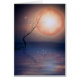Une belle image d'une pleine lune rose lumineuse énorme brille et se reflète dans l'eau bleue de ondulation ci-dessous. Hors de l'eau qu'une branche simple atteint jusqu'au ciel, un peu du bois de flottage est derrière lui. Les insectes de foudre, les fées ou d'autres objets de scintillement apparaissent dans toute la scène. L'horizon de la terre accidentée se silhouette à l'arrière-plan, mais la lune semble presque plus étroitement. Art. stupéfiant.