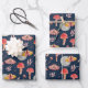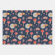 Magic night moth and mushroom pattern wrapping paper sheets.