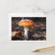 Classic Amanita Muscaria mushroom in the forest with leaves.