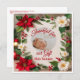 Celebrate the joy of the season with this beautifully designed flat greeting card, perfect for sharing your family's newest blessing. The front features a festive floral border of red poinsettias, white blossoms, pine sprigs, and berries, framing a soft cream-colored space where a photo of your baby brings the card to life. The words 'Thankful for our gift this Season' appear below the image, expressing heartfelt gratitude.
