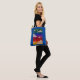 Over the shoulder tote bag with image of a rainbow coloured sky with clouds and stars. Original artwork is acrylics on canvas board.