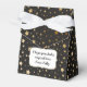 Black background and faux foil gold stars gifts box for a magical party. Ideal for magic parties, Harry Potter parties, or magician themed birthday parties.