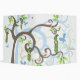 This whimsical design features a sweet illustration of a cute baby boy pea in a pod in blue, growing frotm trees with swirly branches in a magical garden with butterflies.