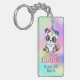 Magic unicorn panda on rainbow background keychain