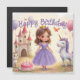 A little princess celebrates her special day with a unicorn, a pink cake, and joyful balloons in a dreamy fairytale meadow, where magic sparkles in every corner and happiness fills the air like stardust