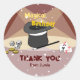 The Magical Birthday Thank You from Name Round Stickers are great for thanking party guests for attending a magic show birthday party. A themed label featuring a magician's hat and other magician's tools such as wand, coins, dice and cards.